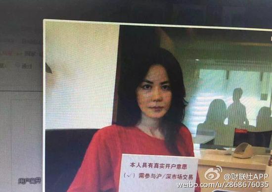 中国股市绝对是今年世界上表现最好的市场,一片飘红看涨。6月1日,网友通过微博曝光天后王菲在证券所开户的照片,并称:“天后王菲也亲自开户了,股市太火爆了!”爆料的照片中,王菲穿着红色上衣,披肩长发,映衬着股市行情,显得格外“红火”。