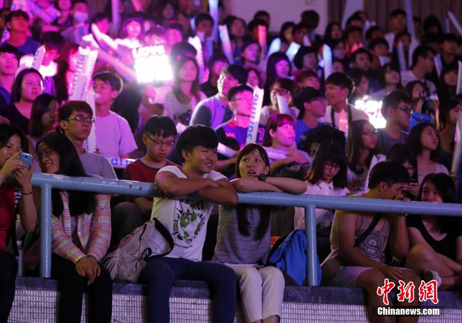 6月1日晚,大陆人气歌唱比赛节目“中国好声音”台湾校园巡回演唱会在位于新北市新庄区的辅仁大学拉开帷幕。演唱会当晚也在台湾中南部的嘉义大学同时唱响。这是“中国好声音”学员首度集体走进台湾校园,也是两岸年轻人一次大规模的音乐文化交流。 中新社发 郑巧 摄