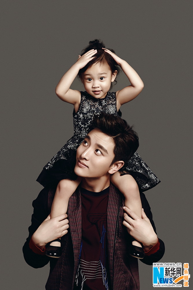 贾乃亮携甜馨登杂志封面 亲吻女儿小脚丫
