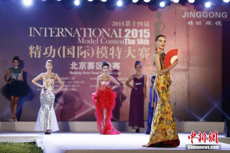 6月14日晚,北京语言大学的留学生赵美乐身着一袭“龙袍”参加比赛,最终她获得季军。当晚,2015第十四届精功(国际)模特大赛北京赛区决赛在罗马嘉园社区举行,近50名主要来自北京高校的中外模特选手参加。 张浩 摄