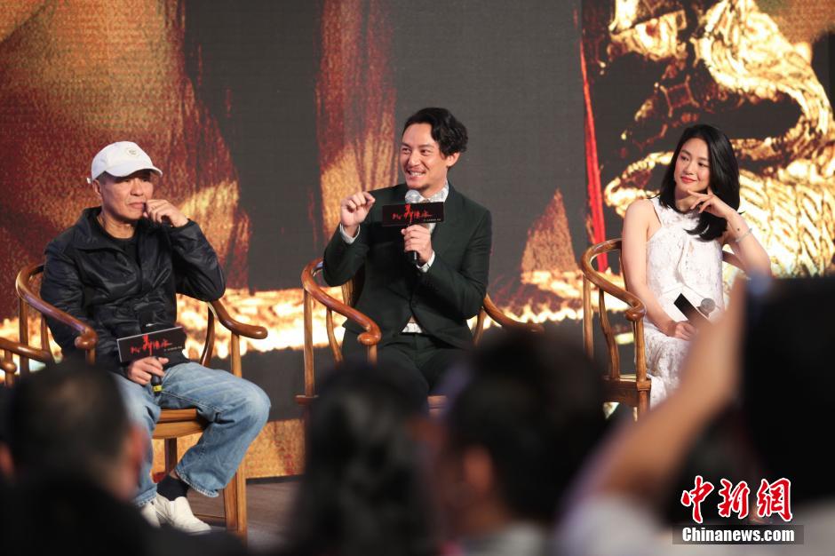 6月16日,在戛纳电影节收获最佳导演的侯孝贤(中)携主演张震(左)、周韵(右)亮相上海,宣布影片《刺客聂隐娘》定档8月27日全国公映。《刺客聂隐娘》作为侯孝贤在大陆首次公映的作品,侯孝贤表示是非常有意思的事情,“很多观众都是通过录像带、DVD认识我。这次上大银幕,真的可以去看看,真的很好看!”中新社发 张亨伟 摄