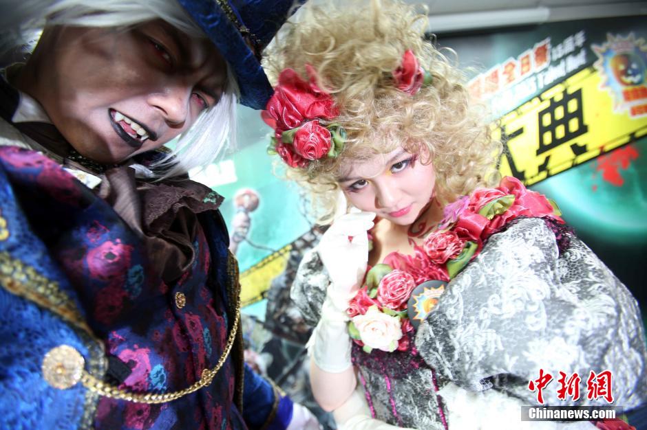 6月16日,香港海洋公园举行“哈啰喂全日祭15周年招魂大典”新闻发布会,“鬼怪”造势宣传。这项万圣节哈啰喂活动将于9月至10月再度来袭,海洋公园率先展开大型招聘活动,公开招募超过2,000名有才华、具胆色的鬼才,联手炮制亚洲最大规模的万圣节盛事。中新社发 洪少葵 摄