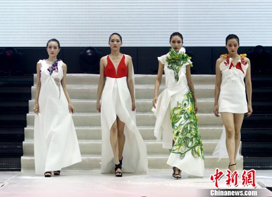 成都纺专大学生毕业生女装设计作品系列。 刘忠俊 摄