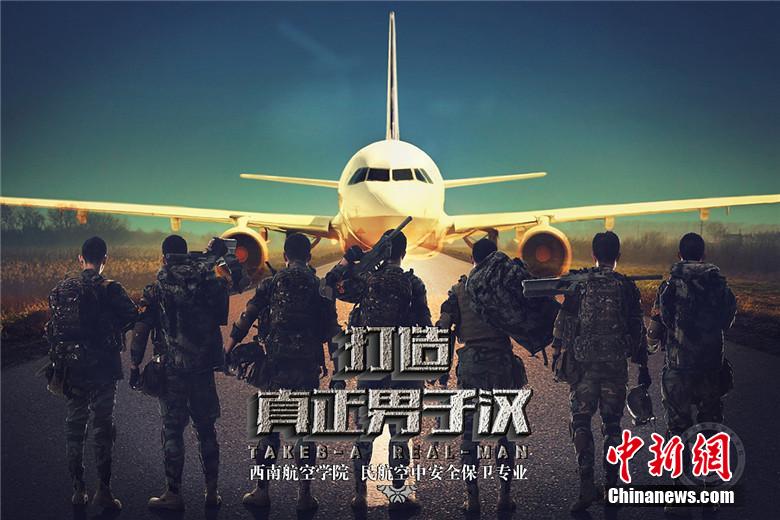 高校海报现《战狼》雄风 空少变身“特种兵”