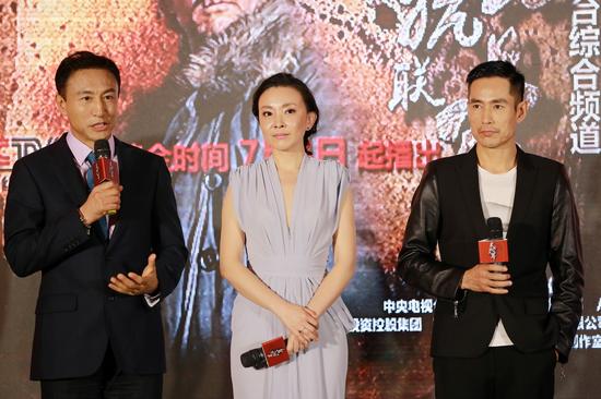 新浪娱乐讯 7月1号,大型抗日战争题材电视剧《东北抗日联军》首播新闻发布会在北京某酒店举行,导演李文岐携主演王洛勇[微博]、刘威葳[微博]、成泰燊[微博]、史光辉出席,“父女兵”储智博,储小蕾也亮相现场。导演和主创不仅在现场分享了他们创作的心路历程,李文岐更是自爆全家人都是英雄赵尚志的粉丝,而刘威葳也在现场动容的表示,李文岐导演是她一生的贵人。