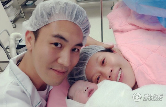 2015年6月3日,小晴天出生。任祉妍微博晒与老公、女儿合影。