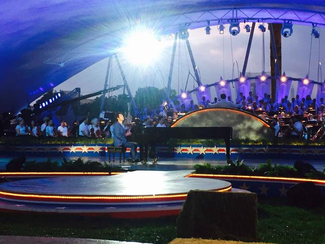 腾讯娱乐讯 7月4日,一年一度的美国独立日庆祝活动盛大举行,从白宫、国会山庄一直到波多马克河边, 全天进行着各式各样的活动。作为受邀参加独立日音乐会的中国钢琴家、联合国和平大使郎朗,与美国国家交响乐团在国会大厦的西草坪广场上合作了著名作曲家乔治·格什温的经典作品《蓝色狂想曲》,这位与美国五大交响乐团合作超过百场的钢琴家凭借饱含深情的演奏让全场沸腾。这是郎朗继2011年之后第二次在美国独立日上演奏。