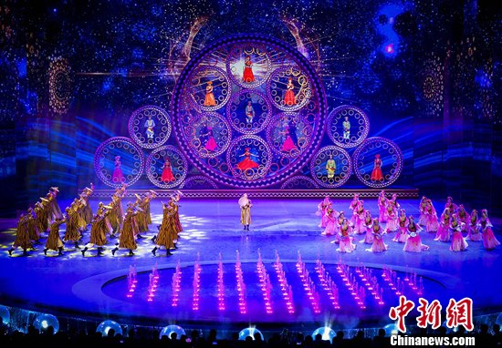 7月20日晚,第四届中国新疆国际民族舞蹈节在昌吉新疆大剧院盛大开幕。作为本届舞蹈节开幕式剧目,室内大型实景民族歌舞秀《千回西域》由疆内外优秀演职人员和俄罗斯、格鲁吉亚、乌克兰的100余位外籍演员携手打造,以西域的绚烂文化、历史典故为基点,融合了舞台剧、杂技、水上芭蕾、冰上舞蹈等多种表演形式。据介绍,本届舞蹈节为期17天,将有25个中外艺术团队为新疆各族观众带来78场演出。其中,既有享誉国际艺术舞台的经典芭蕾舞剧《吉赛尔》、《一千零一夜》,也有通过现代舞蹈艺术表现中华传统文化的精品《孔子》、《千手观音》等。