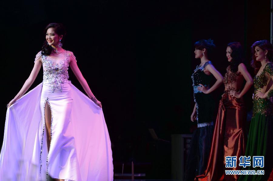 7月26日,在马来西亚沙巴州首府哥打基纳巴卢,佳丽参加晚装环节的角逐。当晚,马来西亚沙巴州举行地球小姐比赛,共有12名佳丽参加了环保服饰、泳装、晚装和口才环节的角逐。图片来源:新华网