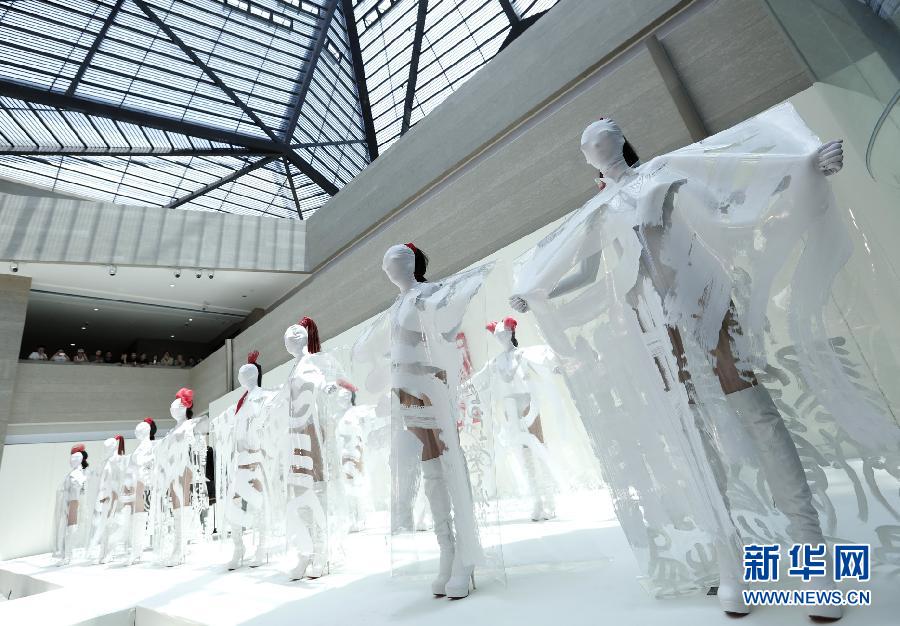 7月28日,模特在“惊鸿——王新元书法篆刻艺术展”上演绎时装设计师王新元创作的“篆书时装”。当日,融汇时装、音乐、书法、篆刻等艺术表现形式的新媒体跨界组合展“惊鸿——王新元书法篆刻艺术展”在浙江杭州展出。著名时装设计师王新元创作的“篆书时装”为传统书法艺术增添时代气息和现代精神。新华社记者 李明放 摄