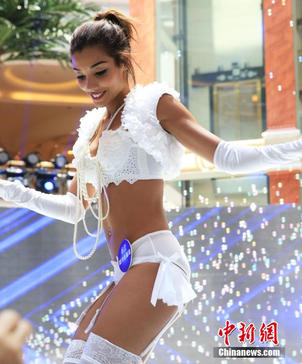 图为纸巾比基尼婚纱秀。 潘索菲 摄