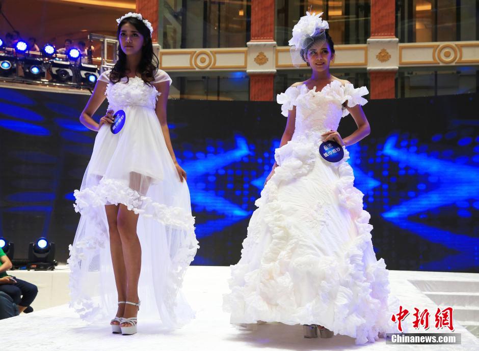 图为时尚纸巾婚纱展示。 潘索菲 摄