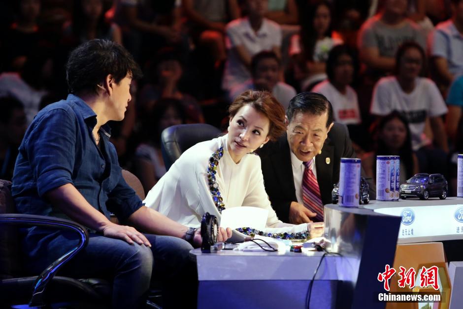8月1日,央视主持人董卿(中)参与节目录制。当日,央视极限挑战类节目《挑战不可能》在北京举办媒体看片会。据悉,这档即将在8月2日开播的节目,集结了“跨界”评委阵容:主持人董卿、“华人神探”李昌钰博士、音乐人周华健,撒贝宁则担纲主持。每期选择中外8个左右选手,涵盖技能、体能、脑力等多个项目的极致挑战。 中新社发 李慧思 摄