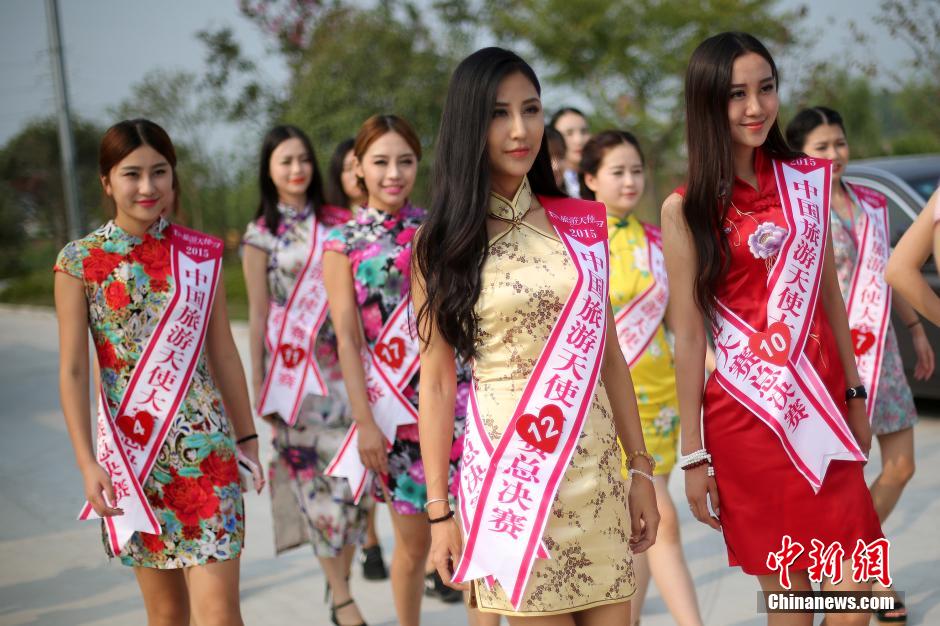 选手们在扬州棠湖度假村集体亮相。 中新社发 泱波 摄