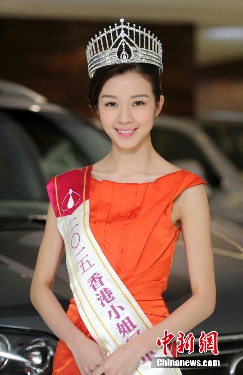 应届港姐冠军麦明诗到香港湾仔一车行出席颁奖活动。身为十优状元的麦明诗透露,要考4次才成功考获车牌。 中新社发 谭达明 摄
