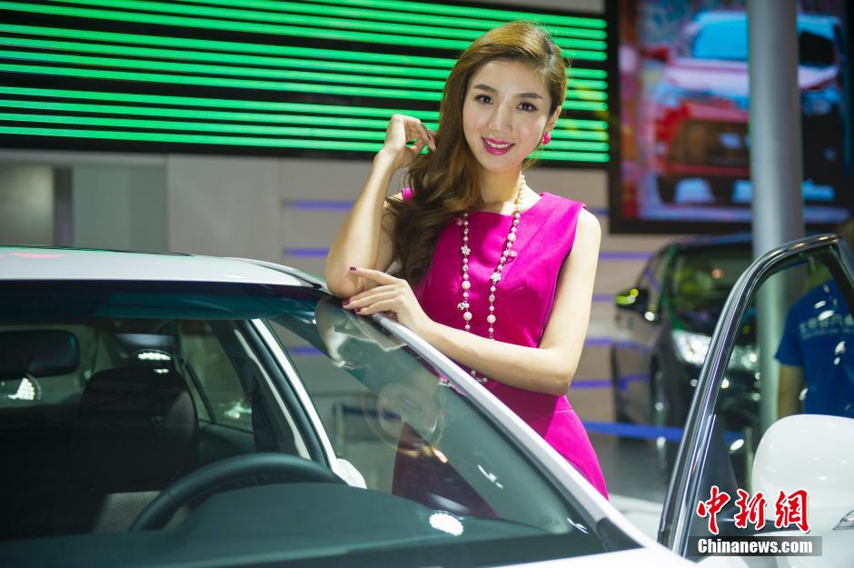 9月17日,2015(第九届)海南金秋国际车展在海口的海南国际会展中心开幕,光鲜靓丽的车模抢眼球,引众多观展市民和摄影爱好者驻足。该展览共吸引了包括玛莎拉蒂、宝马、奔驰、讴歌、沃尔沃等60多个国内外汽车品牌的500多款车放价促销。中新社发 骆云飞 摄