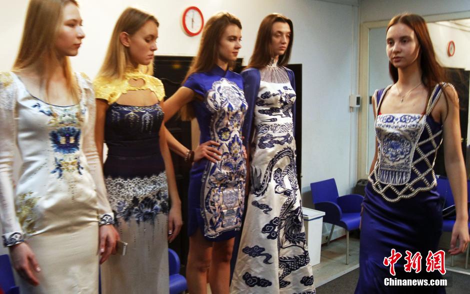 身着华服的俄罗斯模特。 中新社记者 钱兴强 摄
