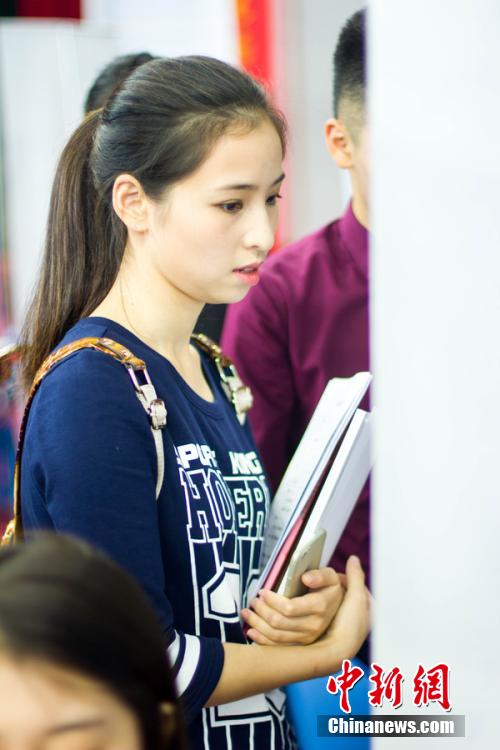 2015年10月20日,浙江杭州,又到了一年一度的招聘季,浙江传媒学院当日在下沙校区举行“开发区2015年文化创意人才浙传专场招聘会”,现场美女云集。 图片来源:视觉中国
