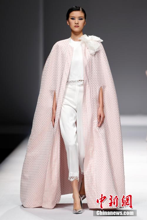 10月27日,模特在T台上展示设计师、品牌创始人Giada Belfiore设计的高级定制时装。当日,Giada Curti高级定制时装发布会在北京举行。中新社记者 盛佳鹏 摄