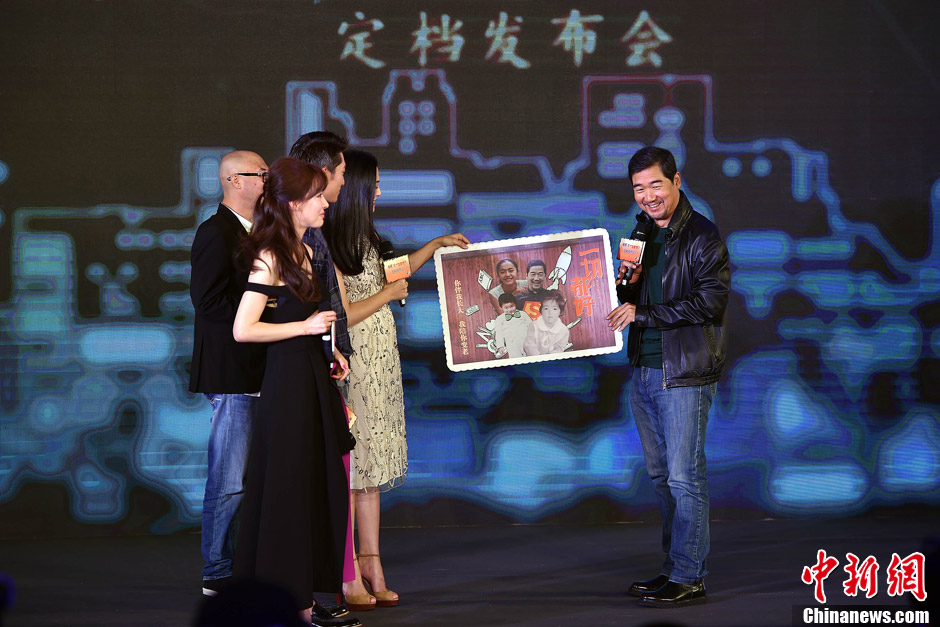 11月2日下午,即将于明年1月15日上映的电影《一切都好》在北京举行发布会,导演张猛携主演张国立、姚晨、窦骁、叶一云等出席。图为主创团队与“全家福”合影。中新网记者 金硕 摄