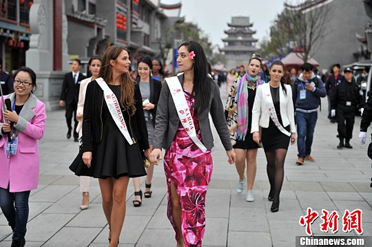 12月3日,世界小姐参观福建平潭海坛古城。中新社记者 吕明 摄