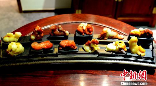 十二生肖寿山石雕精品现福州,美不胜收。 刘可耕 摄