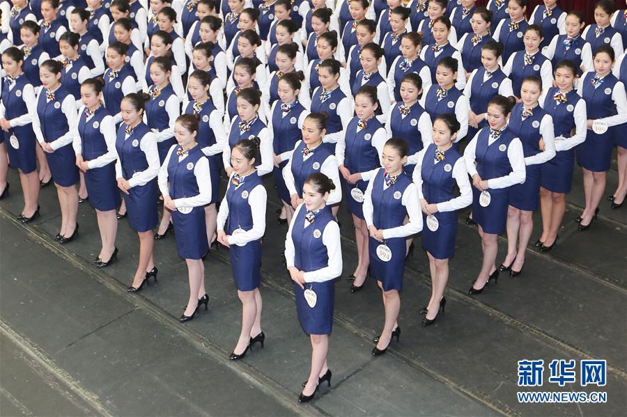 12月28日,考生在推介会上展示空乘礼仪。当日,2016“东方丽人”第十一届全国高校“模特·空乘”专业推介会在山东青岛举行,吸引了山东、河北、山西、安徽、江苏、吉林等省份的应届毕业生参加。一年一度的模特、空乘专业面试被考生誉为“美丽推介会”,不仅方便来自全国各地相关专业的高校集中选拔,也为考生搭建了展示自我的平台。图片来源:新华网