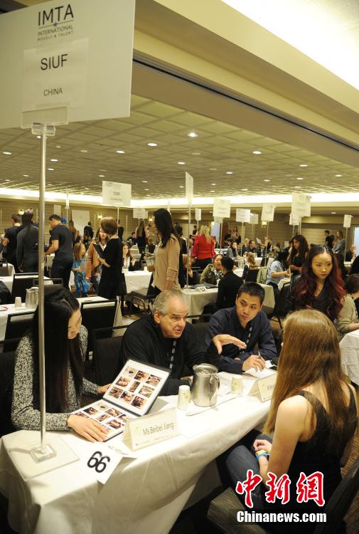 IMTA副总裁JoeyHunter(中)、深圳市内衣行业协会常务副会长兼秘书长、SIUF国际内衣超模选秀大会创始人张峰伟(右)以及SIUF2015国际内衣超模选秀大会冠军姜贝贝担任全程评审。 中新社记者 毛建军 摄
