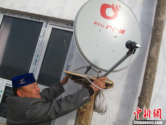 11月18日,村民朱马哈力调整电视信号接收器。当天,塔尔郎35千伏输变电工程正式竣工并通电投运,标志着新疆最北端的阿勒泰地区最后一个无电村——阿勒泰市阿拉哈克乡塔尔郎村及其周边区域4个村子农牧民从此彻底结束了无电历史。中新社发 闫文陆 摄