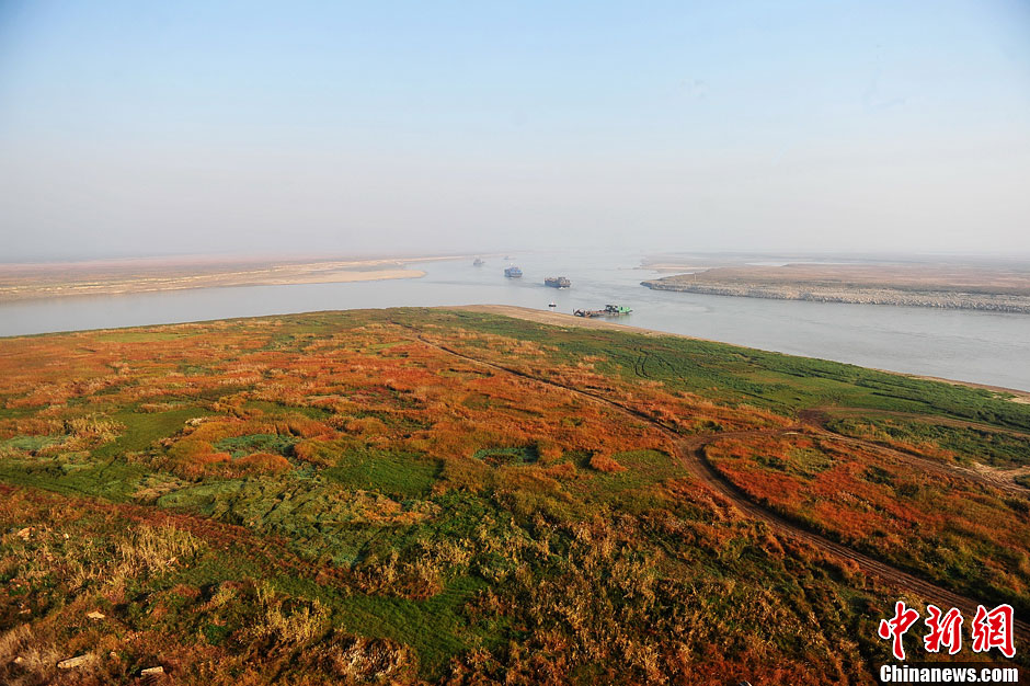 连日来,受长江低水位和江西境内降雨偏少的影响,中国最大淡水湖鄱阳湖提前进入枯水期。11月19日,在江西省永修县吴城镇鄱阳湖水域,丰水期水天一色的湖面,现在已经成了茫茫“草原”。“草原”上,鹭鸟翩飞,构成一幅鄱阳湖特有的初冬壮美画卷。图为江西省永修县吴城镇望湖亭,这里是修河与赣江交汇流入鄱阳湖处。刘占昆 摄