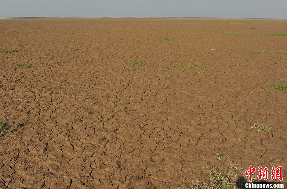 连日来,受长江低水位和江西境内降雨偏少的影响,中国最大淡水湖鄱阳湖提前进入枯水期。11月19日,在江西省永修县吴城镇鄱阳湖水域,丰水期水天一色的湖面,现在已经成了茫茫“草原”。“草原”上,鹭鸟翩飞,构成一幅鄱阳湖特有的初冬壮美画卷。图为江西省永修县鄱阳湖水域,干涸的“湖床”。刘占昆 摄