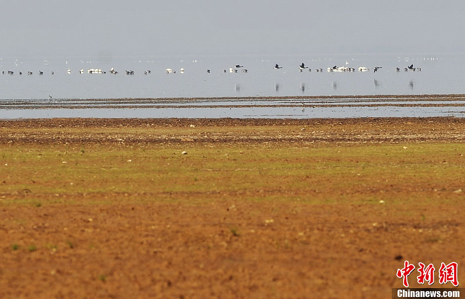 连日来,受长江低水位和江西境内降雨偏少的影响,中国最大淡水湖鄱阳湖提前进入枯水期。11月19日,在江西省永修县吴城镇鄱阳湖水域,丰水期水天一色的湖面,现在已经成了茫茫“草原”。“草原”上,鹭鸟翩飞,构成一幅鄱阳湖特有的初冬壮美画卷。图为11月19日,在江西省永修县吴城镇大湖池候鸟保护区觅食的候鸟。刘占昆 摄