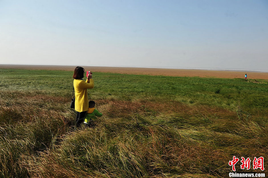 连日来,受长江低水位和江西境内降雨偏少的影响,中国最大淡水湖鄱阳湖提前进入枯水期。11月19日,在江西省永修县吴城镇鄱阳湖水域,丰水期水天一色的湖面,现在已经成了茫茫“草原”。“草原”上,鹭鸟翩飞,构成一幅鄱阳湖特有的初冬壮美画卷。图为一名游客站在鄱阳湖“大草原”上。刘占昆 摄