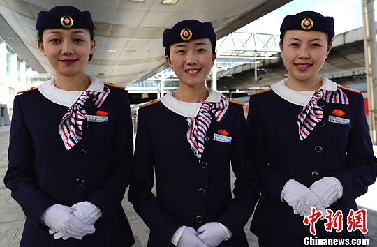 10月20日,昆明铁路局客运段担任本月30日开行的昆明至北京西T240/239次列车乘务员正式试穿新制服,进行动作规范、服务技巧训练。该新制服女乘务员佩戴紫色贝雷帽,颈部系彩色丝巾,男乘务员身着白衬衣和笔挺紫色西装,一改过去乘务员服装单调情况,被赞靓丽赛空乘人员服装。