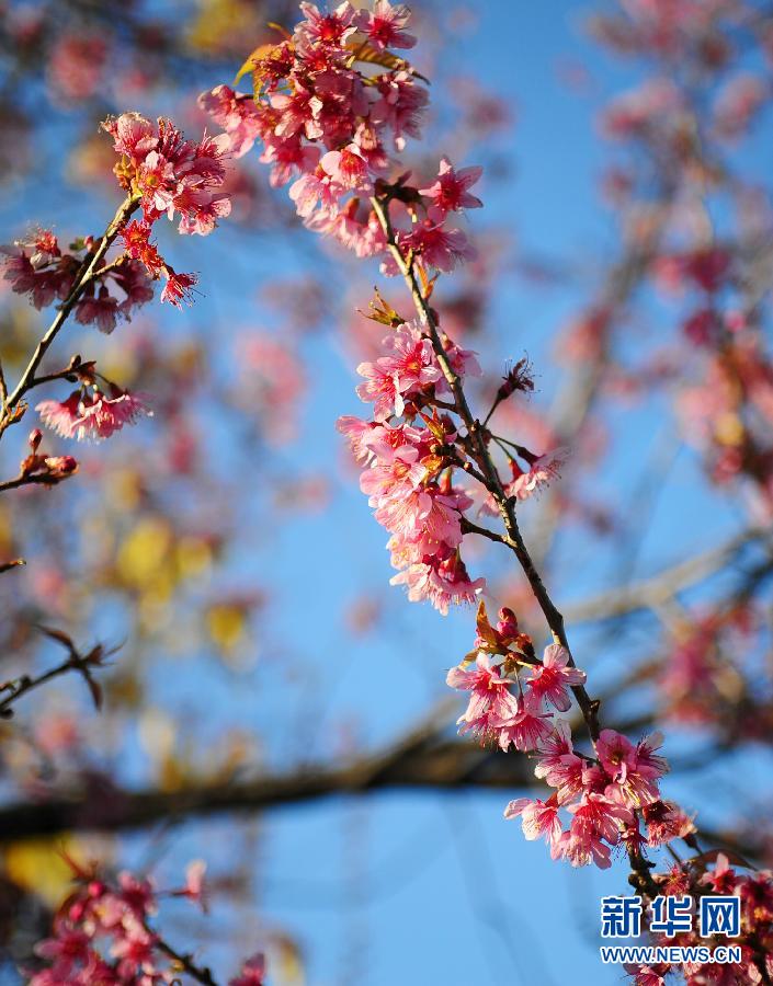 这是在昆明市红塔西路上拍摄的冬樱花(12月8日摄)。 新华社记者 秦朗 摄