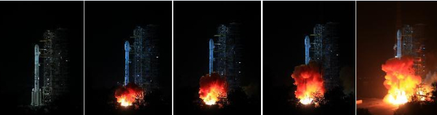12月2日1时30分,搭载着嫦娥三号的长征三号乙运载火箭在西昌卫星发射中心发射升空并准确入轨,发射圆满成功。这是长征三号乙运载火箭发射过程拼版图。新华社记者 李刚 摄