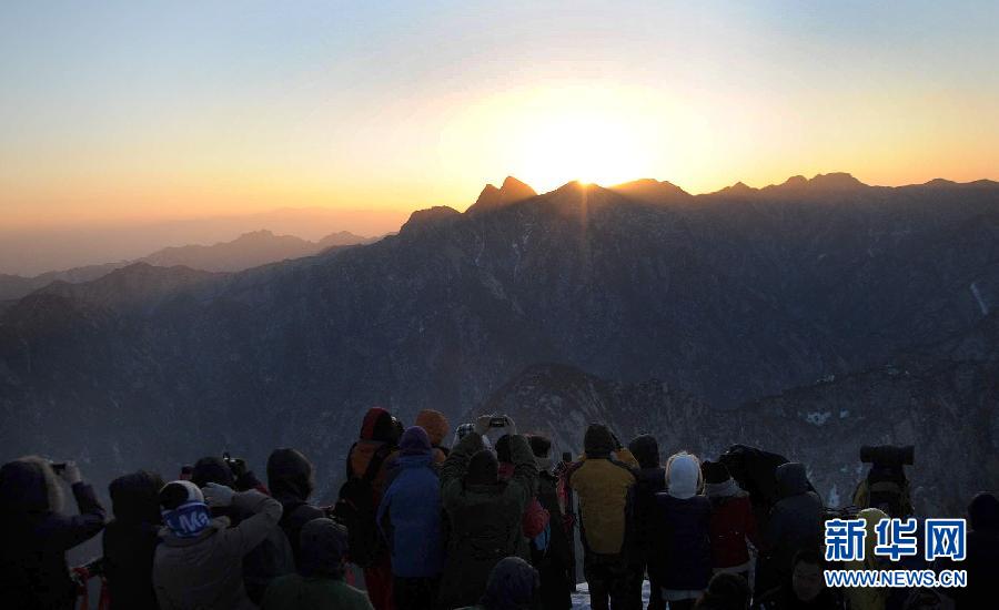 西岳华山系五岳最高的山峰,每年接待游客200多万人次。冬季的华山,日接待游客约3000人次,门票是旺季的一半,游人不仅能观赏到奇特的北方雪景,还能体验华山更险峻的一面。新华社记者陶明摄