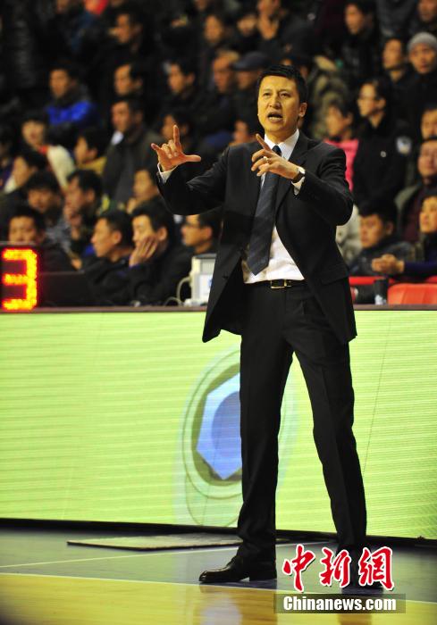 12月15日,辽篮新帅郭士强首次亮相。当日,CBA第14轮辽宁衡业主场对阵山西中宇的比赛在辽宁本溪举行。 最终,辽宁衡业(白)主场87:83战胜山西中宇(黄)。中新社发 于海洋 摄