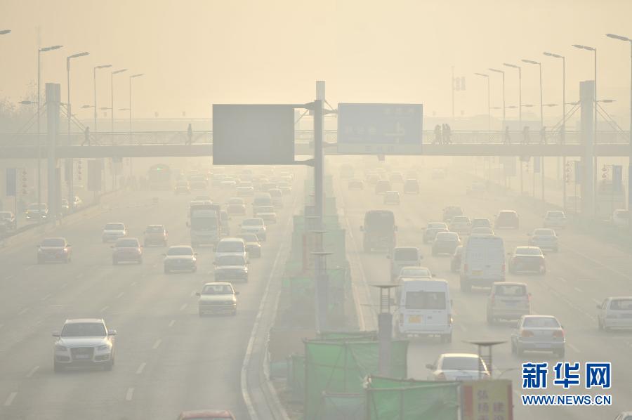 12月23日拍摄的天津市河东区津滨大道。 12月22日晚,天津市环保部门发布预警提示22日—25日天津将出现重污染天气,并发布Ⅲ级(黄色)重污染天气预警。 新华社记者岳月伟摄