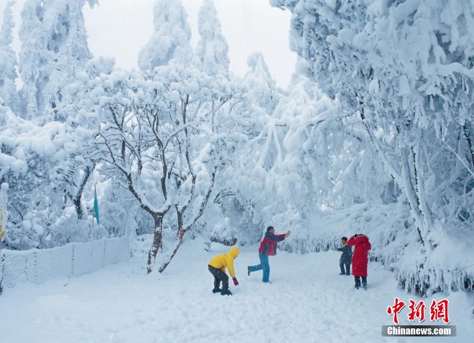 12月26日,以“祈福求祥拜普贤,赏雪滑雪泡温泉”为主题的第十五届峨眉山冰雪温泉节拉开序幕,滑雪体验、雪地摩托、雪上飞碟等众多冰雪娱乐项目吸引了来自八方游客。图为正在雪地嬉戏的游客。刘勇 摄