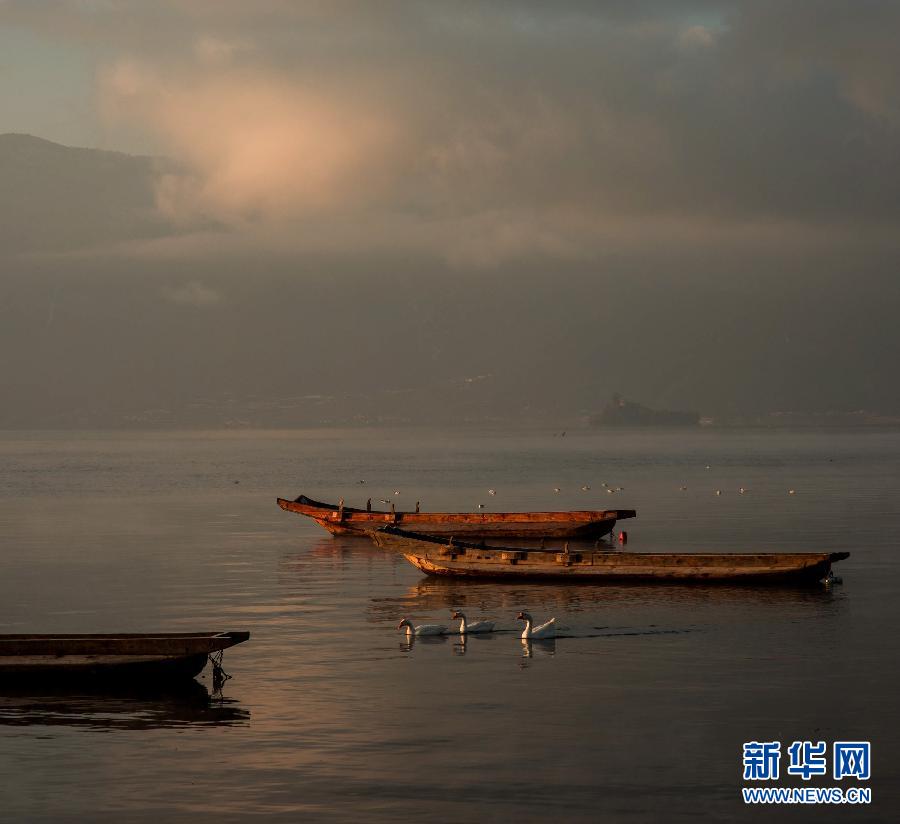 泸沽湖,位于四川省凉山彝族自治州与云南省丽江市之间,面积近50平方公里,湖面海拔约2690米,有“高原明珠”之称。连峰倒影浮,冬日的泸沽湖分外幽静。新华社记者 江宏景摄