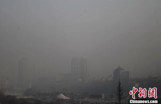 12月30日上午,青海省省会西宁笼罩在一片朦胧之中。从12月25日起,西宁市出现霾天气,已持续一周。由于近期青海天气处于静稳状态,无大风、降水,预计未来几天,西宁仍将持续这种霾天气。中新社发 胡友军 摄