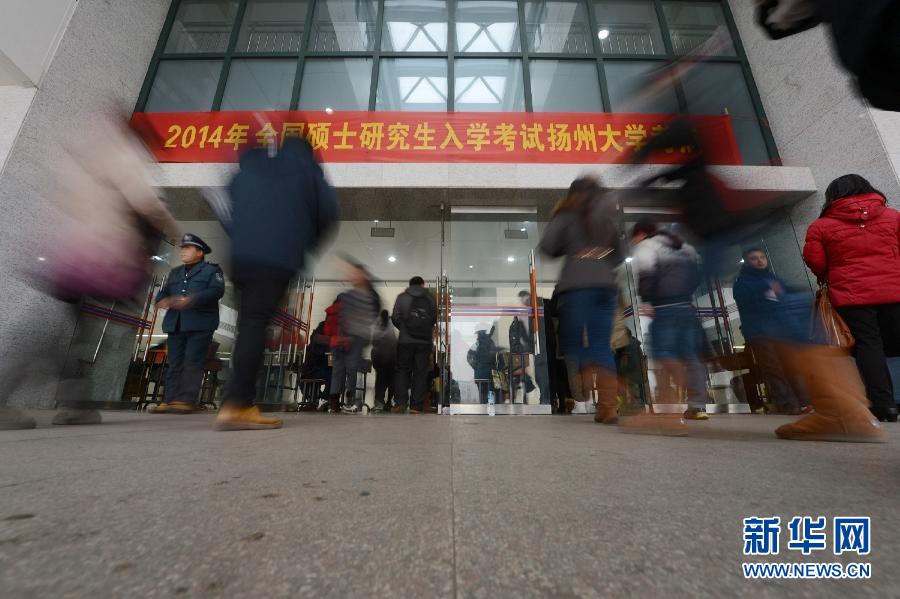 1月4日,在扬州大学考点,考生进入考场。  当日,2014年全国硕士研究生入学统一考试开考。   新华社发(孟德龙 摄)