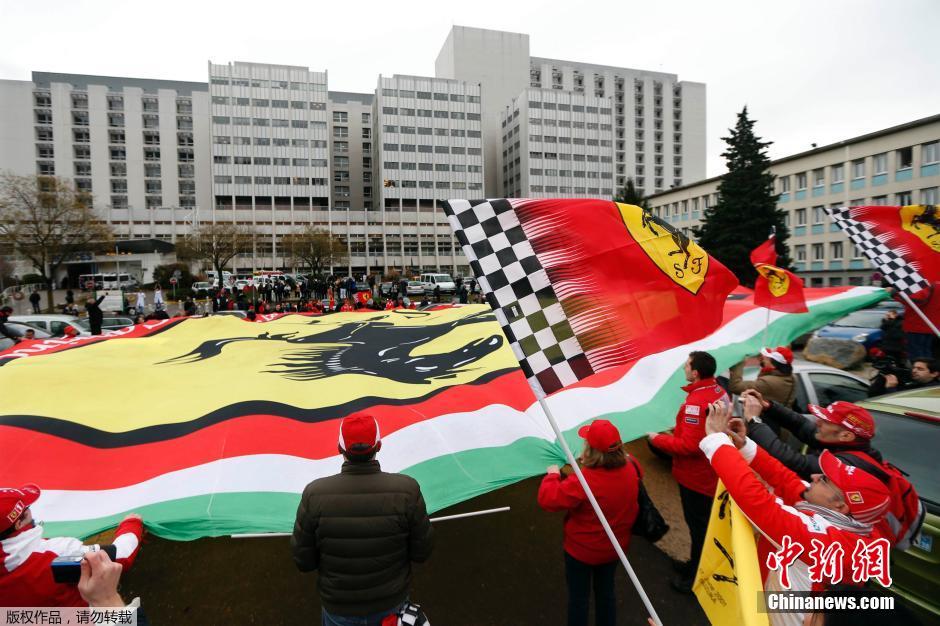 当地时间2014年1月3日,法国格勒诺布尔,众多舒马赫的车迷在医院外为车王祈祷、祝福。当天也是舒马赫45岁生日。