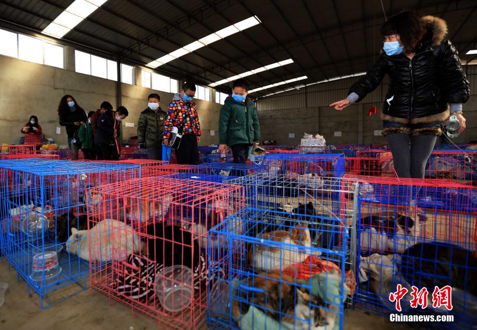 1月21日,来自武汉市大兴路小学24名的小学生来到位于江夏区的李桥村钢材市场,对近日武汉志愿者解救并寄养在此的猫咪进行集中式领养。中新社发 张畅 摄
