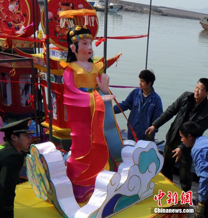 1月28日,福州连江黄岐边防派出所官兵协助工作人员将赠送马祖的花灯搬运装船。当日,装载赠送马祖乡亲的1029盏花灯的马祖建騵号货船带着新春祝福,驶离福州连江县黄岐台轮停泊点码头,启运马祖。今年,在第12届“两马同春闹元宵”的活动中,福州马尾区定制并赠送马祖同胞款式多样的走马灯,八骏图、马年特制花灯、妈祖女神灯、新春喜庆灯等1029盏花灯,贺新春送祝福。中新社发 刘可耕 摄