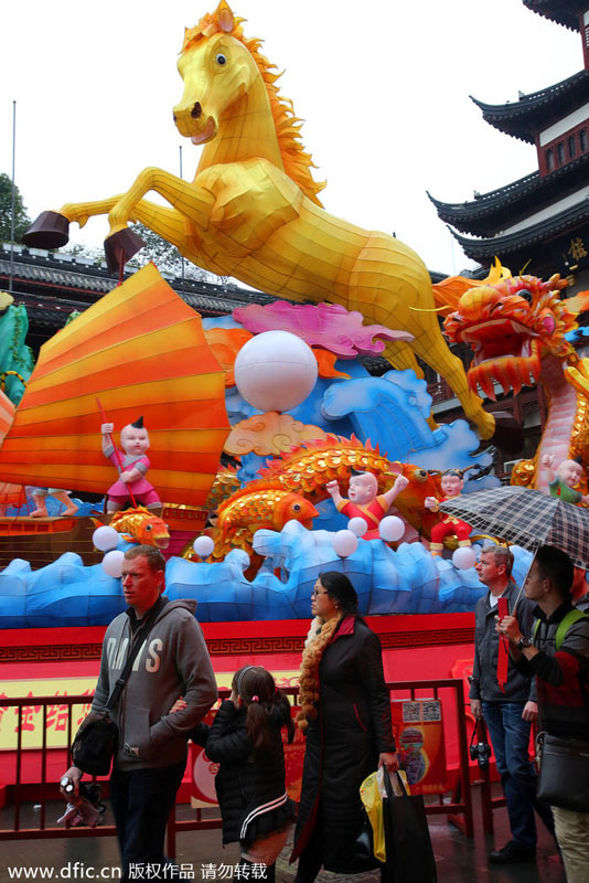 2014年1月29日,上海过年最具有中华民俗传统节庆人文景观的豫园灯会,在经过两周的试灯成功后,将于1月31日(初一)正式亮灯,至2月17日(十八)每天亮灯时间为17:30至22:00。当日是小年夜,上海转阴天有时下小雨,人们仍去观赏豫园灯会。据发布的上海春节气象信息,大年夜至年初二为晴暖天、最高温度将升至约20度;初四将转雨并逐日降温,至初六最低温度将跌至2度。