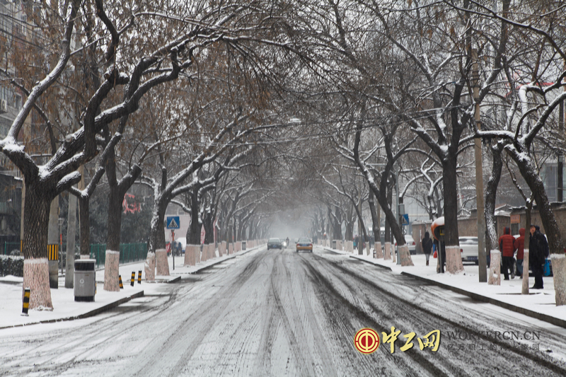 2月7日凌晨,京城上空飘起了雪花,北京迎来了马年首场降雪,不过,今天正是春节假期后的第一个工作日,所以这场降雪也给市民出行带来不便。据悉,今天白天降雪仍将持续。图为雪中的街道。中工网记者韩靖摄