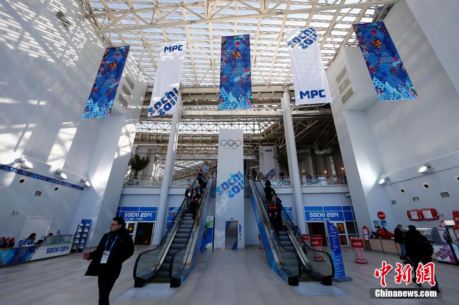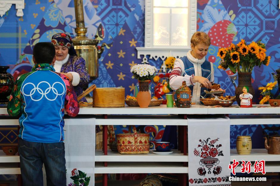2月6日,索契冬奥会开幕在即,媒体大战擂响战鼓,冬奥会主媒体中心的主新闻中心(MPC)和国际广播中心(IBC)已全面投入运行,将成为中外记者及转播机构的工作大本营。图为在主新闻中心的休息区中,各式俄罗斯风情的物品吸引眼球。中新社发 富田 摄