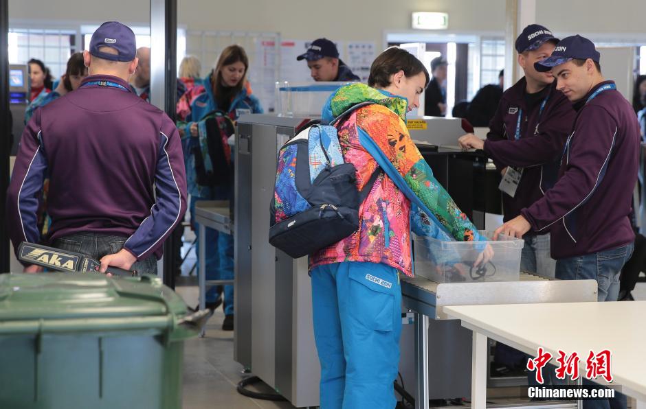 当地时间2月6日,进入索契冬奥会主新闻中心的志愿者以及媒体工作人员接受严格安检。索契冬奥会组委会主席切尔内申科日前表示,本次冬奥会将是“史上最放心的奥运会”。索契冬奥会总投资已达500多亿美元,成了“史上最贵奥运会”;同时,30亿美元的安保投入也大大超过之前奥运会的纪录。刘关关 摄